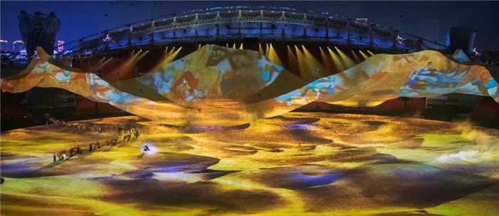 此番,利亞德集自身在視聽(tīng)科技領(lǐng)域的技術(shù)優(yōu)勢(shì),將最前沿的聲光電技術(shù)運(yùn)用的淋漓極致,與導(dǎo)演團(tuán)隊(duì)的文化創(chuàng)意完美結(jié)合,通過(guò)中國(guó)美學(xué)的寫(xiě)意手法創(chuàng)作出了一幕幕恢宏的壯麗詩(shī)篇。