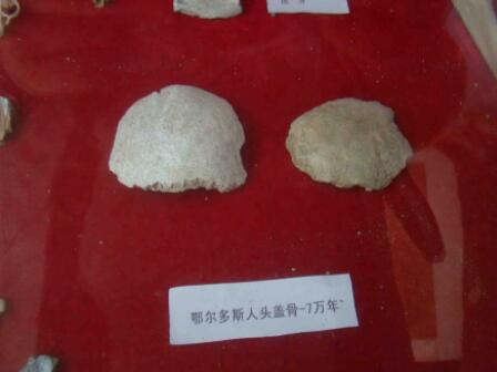 “河套人”化石到目前為止共出土23件,它們包括:1956年在內(nèi)蒙古烏審旗滴哨溝灣村采集到的一段殘右頂骨、一段左股骨;1960年在烏審旗大溝灣村發(fā)現(xiàn)的一塊頂骨化石;1978—1980年,獲得的頂骨、額骨、枕骨、下頜骨、股骨、脛骨、腓骨和肩胛骨等19件化石,其中出自晚更新世原生地層的有6件;還有1922年發(fā)現(xiàn)的幼童門齒化石。通過對“河套人”化石的研究表明,他們生活在距今3.5年到5萬年左右。他們的特征已接近現(xiàn)代人,但仍保留了一些原始性,如頭骨骨壁較厚,骨縫簡單,頜骨粗壯,股骨臂較厚,髓腔較小,這些原始性表明,“河套人”屬于晚期智人。根據(jù)“河套人”的門齒和頭部化石特征來看,它與現(xiàn)代的蒙古人種(黃種人)相近。