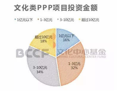 根據(jù)財政部政府與社會資本合作中心公布的資料(截至9月30日),在共計301項文化類PPP項目中,投資金額3~10億元占比最大。具體而言,投資金額小于1億元的有47個,占比16%;投資金額在1~3億元區(qū)間的有96個,占比32%;投資金額在3~10億元區(qū)間的有103個,占比34%;投資金額在超過10億元區(qū)間的有55個,占比18%。