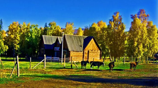 白哈巴村被稱(chēng)為西北第一村和西北第一哨,位于新疆阿勒泰地區(qū)哈巴河縣鐵熱克提鄉(xiāng)境內(nèi),該村的所有建筑均由原木筑成,以外觀很古樸的小木楞屋為標(biāo)志,具有歐式村寨的特色,墻體和頂棚用整根原木壘砌、拼接而成,頂部再用木板支撐成“人”字形的尖頂,可防雨防雪,以保證住房的安全。