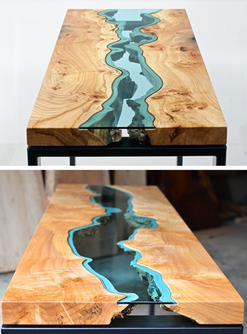 用廢木頭和玻璃做成的河流桌子,由美國西北部沿海地區(qū)的家具設計師 Greg Klassen 設計的「河流」桌子,其選用的木材來自回收的樹木,往往來自即將腐爛的樹,以及來自建筑工地的樹。設計師把樹木原有的紋路想象成河流的岸邊,并且根據木材的邊緣手工切割玻璃,將玻璃覆蓋在木材之上,桌子上翠綠的玻璃看上去仿佛就是一條蜿蜒曲折的河流。美得讓人難以抗拒。