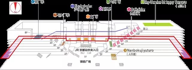京都火車站匯集了5條JR線與近畿線(城市間電車/火車)、2條新干線(高速鐵路)以及1條私鐵線(市內(nèi)軌交),還有27條大巴線路以及大體量的機動車與非機動車停車場,滿足各種旅客的出行需求。