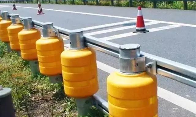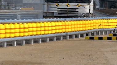 當(dāng)車(chē)子撞到護(hù)欄,里面配備的筒子會(huì)旋轉(zhuǎn)滾動(dòng)