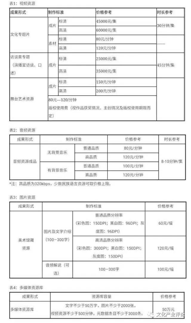 (3)參考全國文化信息資源共享工程2011年度地方資源建設(shè)工作指南地方資源建設(shè)價(jià)格參考標(biāo)準(zhǔn)、市場(chǎng)價(jià)格浮動(dòng)情況及近幾年各地在實(shí)際工作中的反饋情況,制定2018年度地方資源建設(shè)價(jià)格參考標(biāo)準(zhǔn)。(見表1、表2、表3)