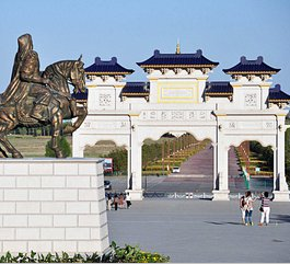 內(nèi)蒙古成吉思汗陵旅游開發(fā)有限責(zé)任公司所轄的成陵旅游景區(qū)是東聯(lián)集團(tuán)于2001年規(guī)劃創(chuàng)建,2004年正式營業(yè),累計投資4.3億元。集景點觀光、餐飲住宿、民俗展示、文藝表演為一體,主要景點有氣壯山河、門景、鐵馬金帳群雕、蒙古歷史博物館、天驕蒙古大營酒店等。旅游區(qū)所屬的蒙古歷史文化博物館,被內(nèi)蒙古自治區(qū)文物局正式批準(zhǔn)為首批自治區(qū)注冊登記博物館,是目前國內(nèi)外唯一專題收藏、研究、展示蒙古民族歷史與文化的大型博物館。博物館建筑造型獨具匠心地設(shè)計為蒙古文“汗”字的造型,即帝王之意,博物館功能齊全,設(shè)施完善,民族特色和現(xiàn)代化氣息濃郁。蒙古歷史文化博物館收藏有一幅世界上最長最大的油畫——《蒙古歷史長卷》,系統(tǒng)地再現(xiàn)了成吉思汗及其子孫的歷史功績。全畫長206米,高2.5米,是由內(nèi)蒙古美術(shù)館館長、著名蒙古族畫家、草原油畫派代表之一王延青主創(chuàng),20多位油畫家共同繪制完成。2007年蒙古歷史文化博物館經(jīng)過兩年多的努力,從內(nèi)蒙古各地集中收集到了206個蒙古式馬鞍,經(jīng)初步鑒定,這批馬鞍集中了蒙古鞍馬文化的諸多內(nèi)涵,部分馬鞍屬稀世珍品。據(jù)有關(guān)專家學(xué)者介紹,蒙古歷史文化博物館收藏的206個馬鞍,是目前國內(nèi)外收集蒙古式馬鞍最多、最好的博物館。