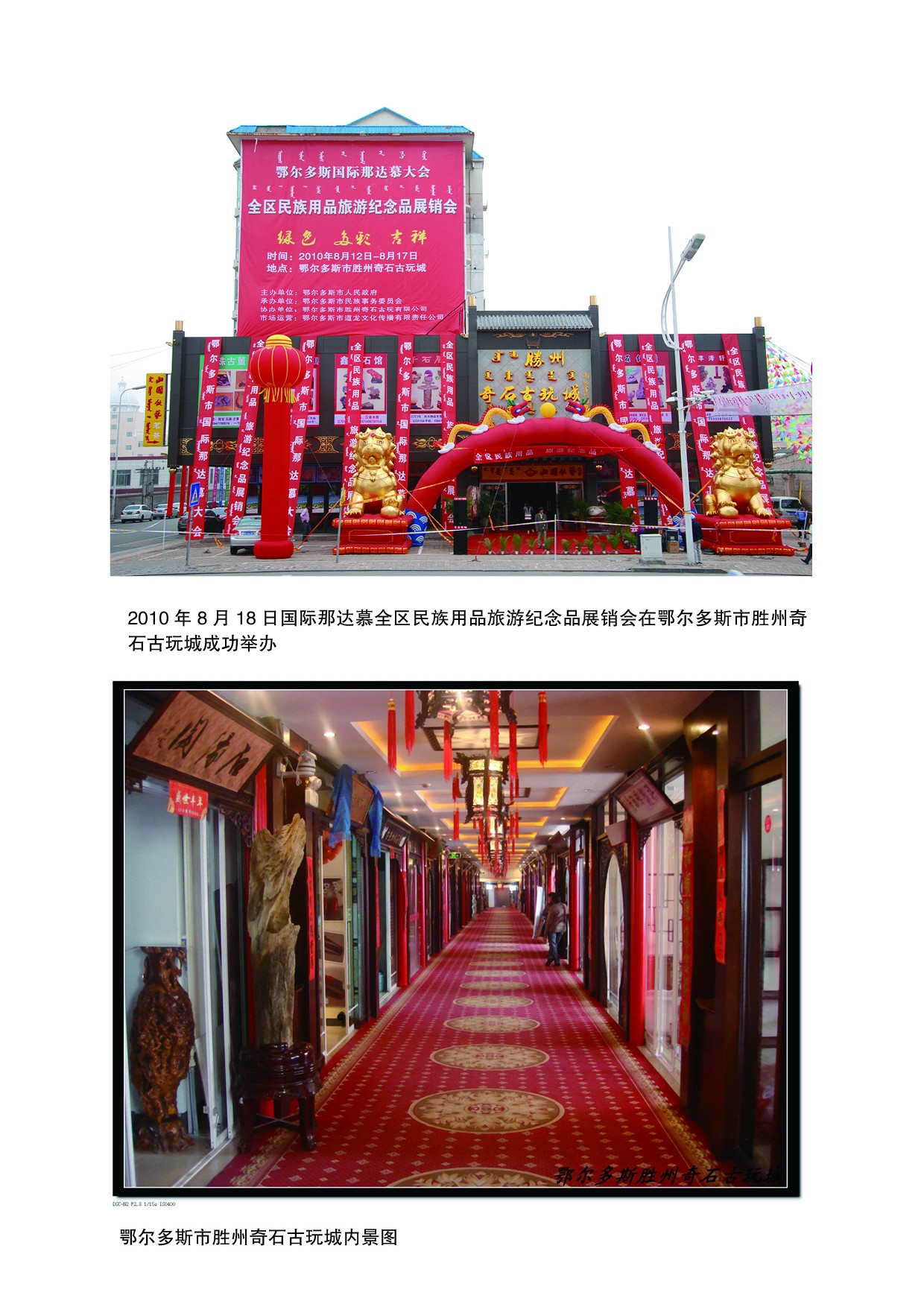 2010年8月12日,“國際那達(dá)慕全區(qū)民族用品、旅游紀(jì)念品展銷會(huì)”分會(huì)在勝州古玩城成功舉辦。