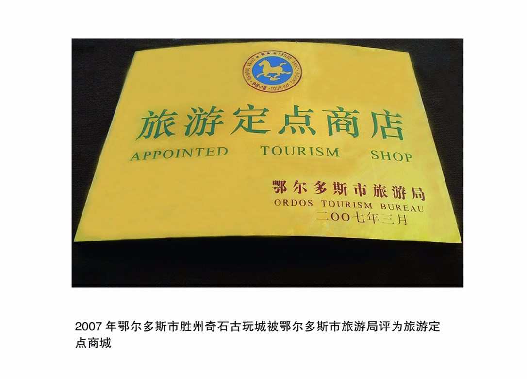 2007年3月,鄂爾多斯市旅游局批準(zhǔn)勝州古玩城為“鄂爾多斯市文化旅游購(gòu)物景點(diǎn)”。
