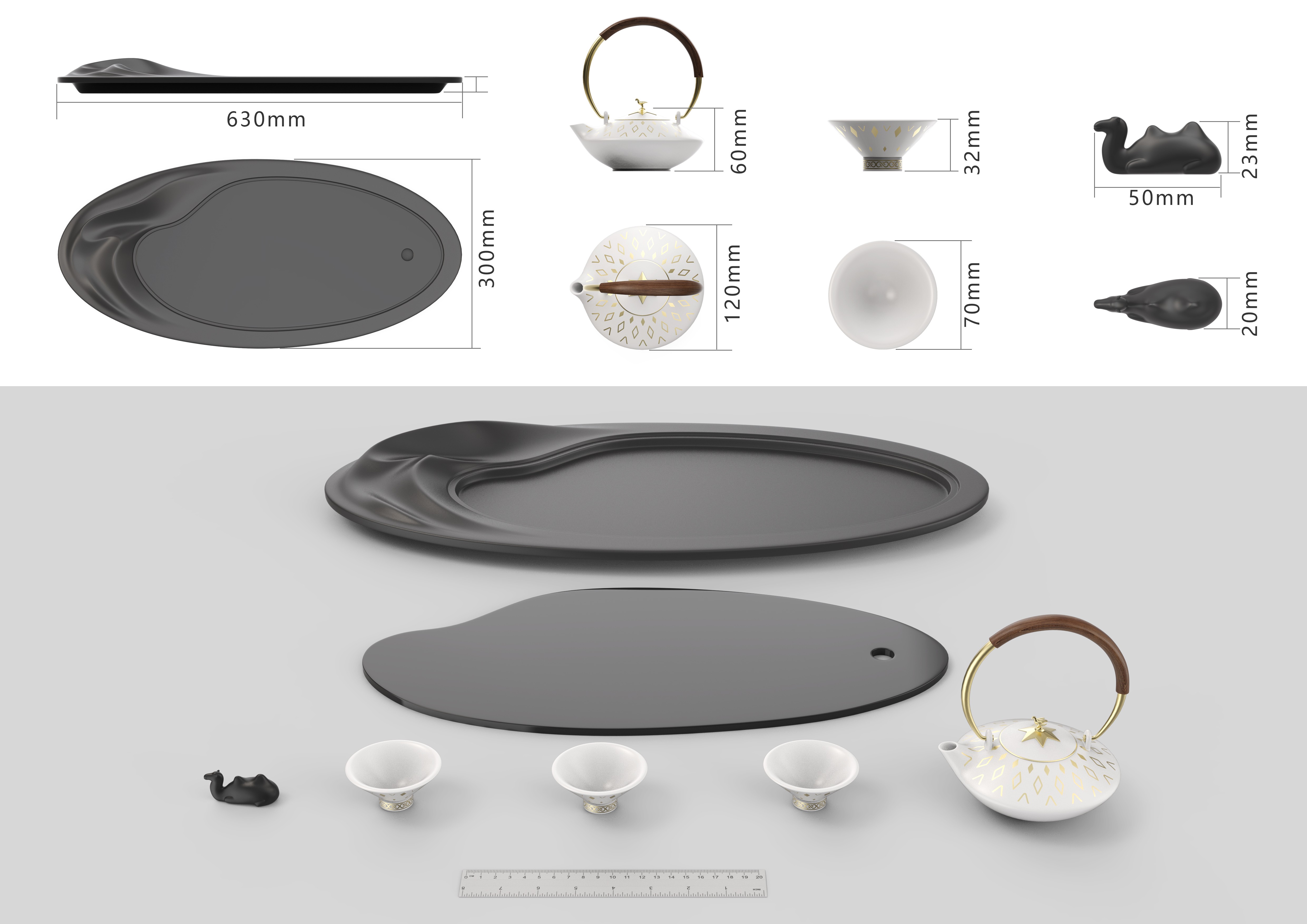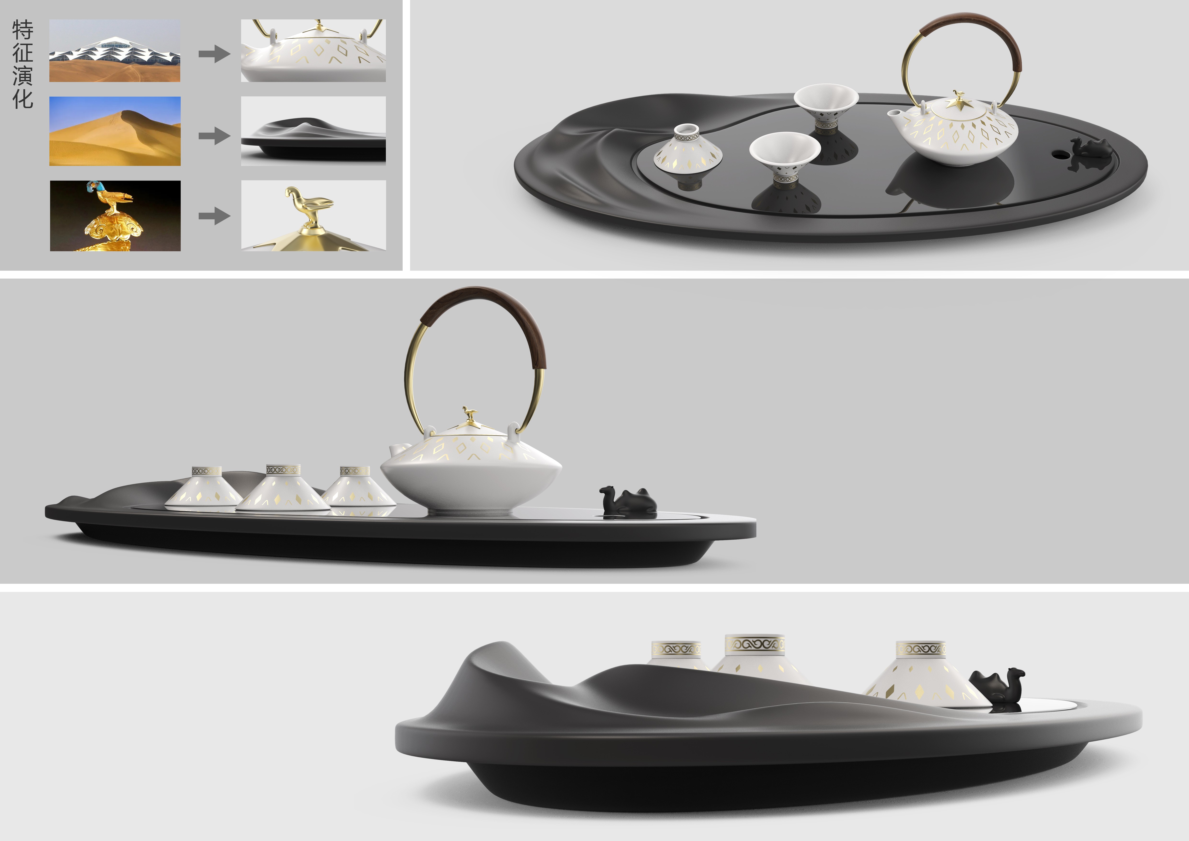 設(shè)計(jì)理念:通過景區(qū)的特征刻畫,茶盤與茶具、茶寵的搭配互映,形成了一個(gè)微景觀,盡顯趣味,勾起回憶。