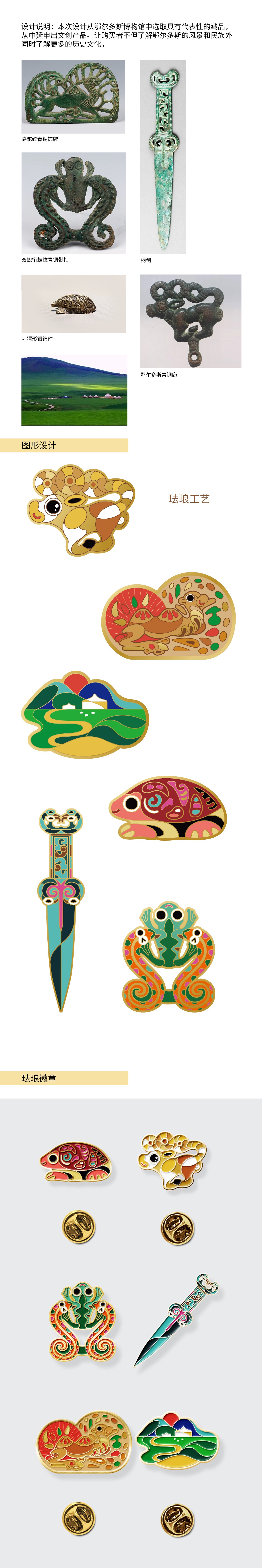 設(shè)計(jì)理念:本次設(shè)計(jì)從鄂爾多斯博物館中選取具有代表性的藏品,